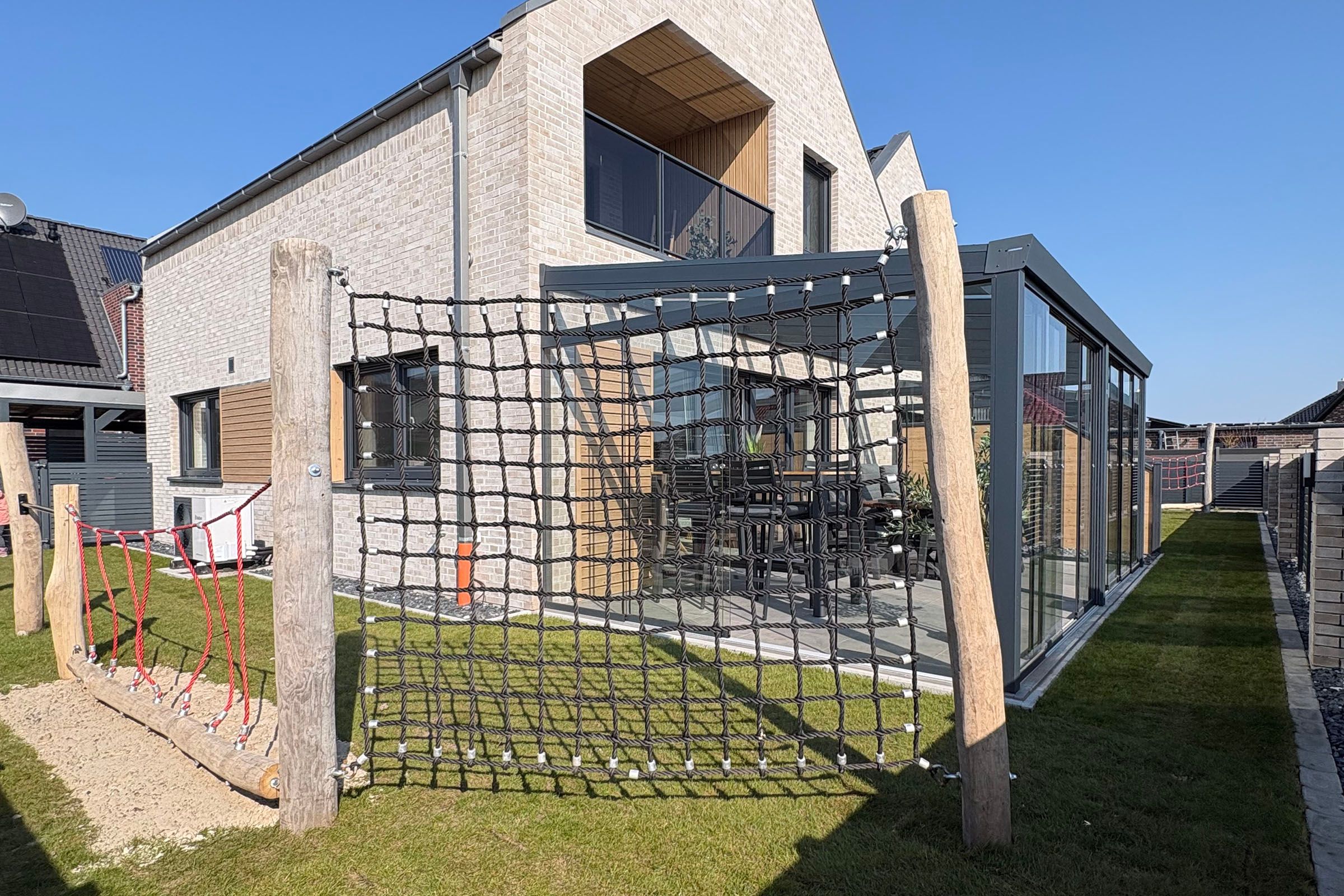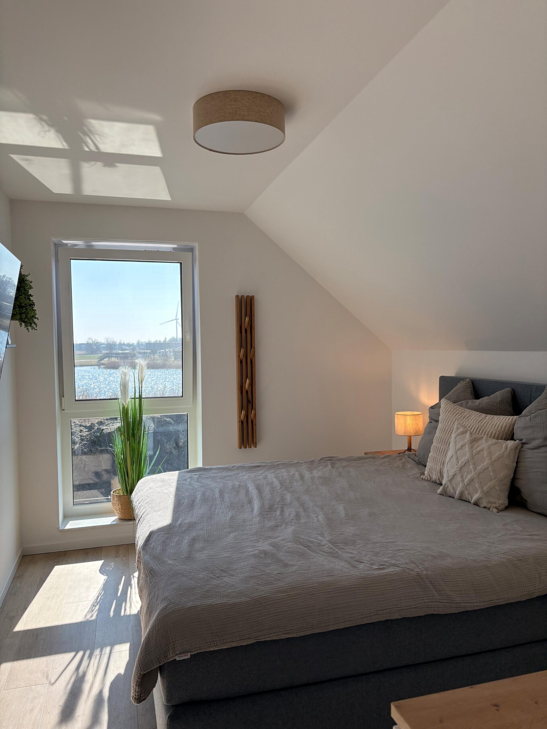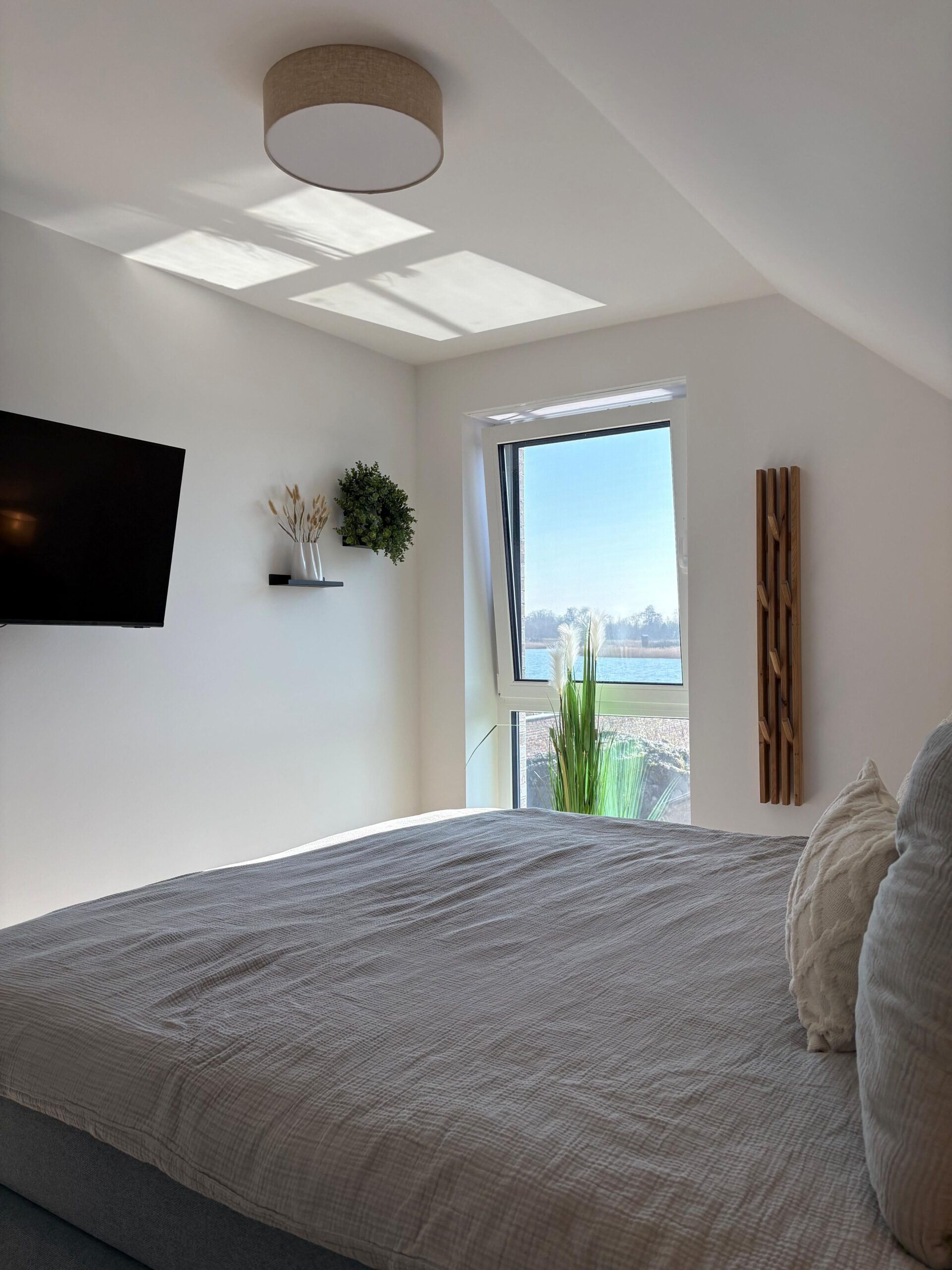 Zwei Badezimmer stehen bereit, darunter bodengleiche Duschen (insgesamt 2) sowie eine Badewanne. Haartrockner, Spiegel, Waschbecken und WC sind vorhanden. Für längere Aufenthalte nutzen Sie Waschmaschine und Trockner jeweils zur Eigennutzung sowie einen Wäscheständer und Staubsauger. Beheizt wird das Haus über eine Wärmepumpe mit Fußbodenheizung; Rauchmelder und Feuermelder sind vorhanden. Ein besonderes Highlight ist der Wellnessbereich mit Sauna und einer Badewanne mit Whirlpool-Funktion zur Eigennutzung. Ein Wintergarten ergänzt das Raumangebot und unterstreicht den hochwertigen Charakter der Unterkunft. Genießen Sie außerdem den Landschafts-, See- und Gartenblick.