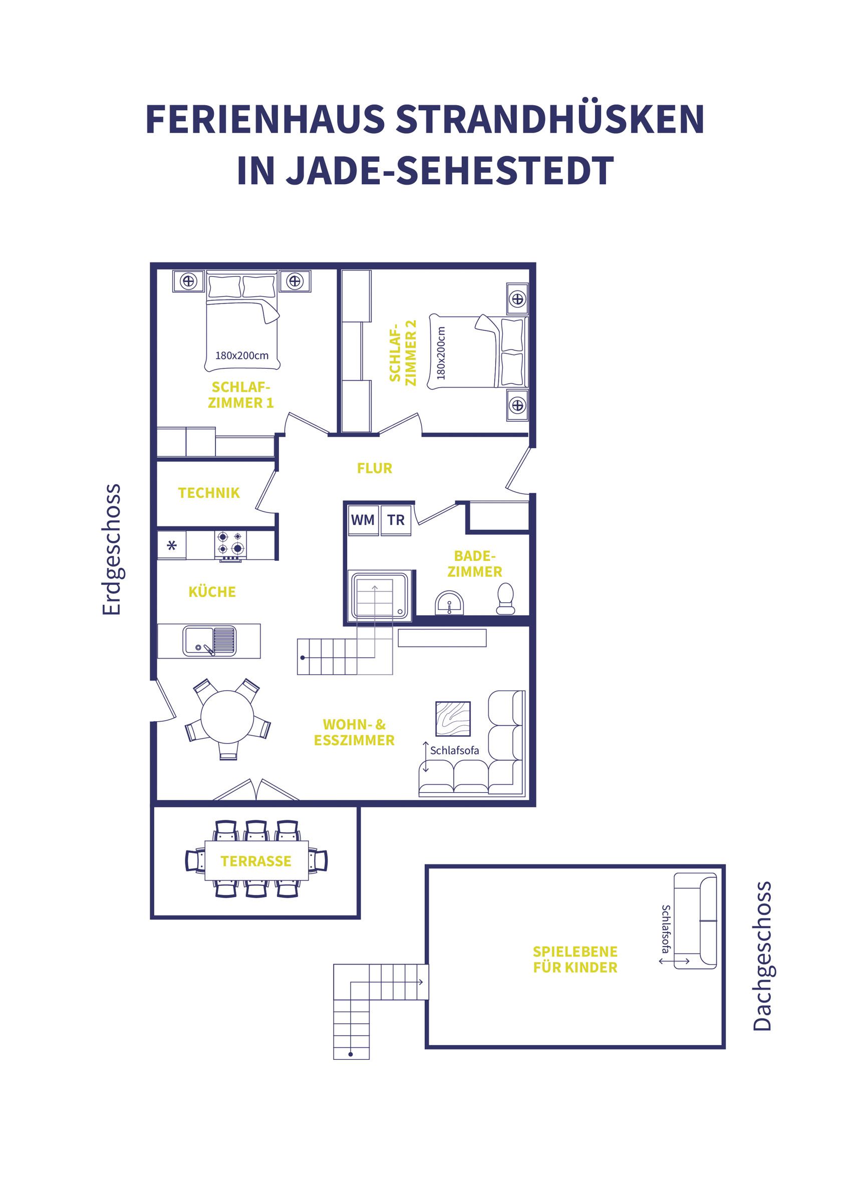 Unser neues Ferienhaus liegt unmittelbar hinterm Deich an der Nordsee und bietet bis zu 8 Personen (maximal 6 Erwachsene) ausreichend Platz.